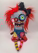 With her patched up dress and wavy hair she dances across the graveyard. Measures 13" length.