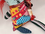 Made of new and recycled fabric, clay details and acrylic paint.